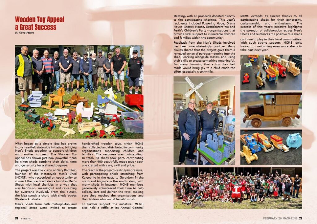We are in the process of planning the next Wooden Toy Appeal and hope that we can encourage even more WA Men’s Sheds to participate this year.